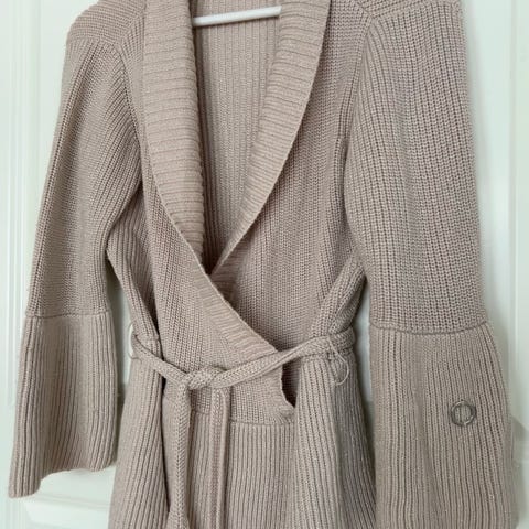 Damstorlek S. Tröjan har en klassisk design med knäppning framtill och två framfickor. Materialet är tweed, vilket ger en texturerad och robust känsla. Mjuk och foglig.