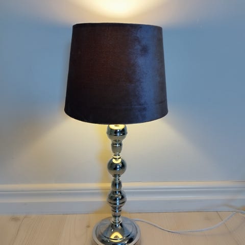 Bordslampa med sammets skärm i ljuslila ca 46 cm hög med skärm