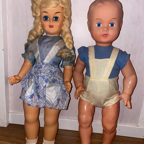 Dockservis i porslin med flera delar inklusive tekanna, koppar, fat, sockerskål och gräddkanna. Servisen levereras i en förvaringslåda med fack för varje del. Färgerna är främst vita med dekorativa motiv i olika färger. Passar som leksak för barn.