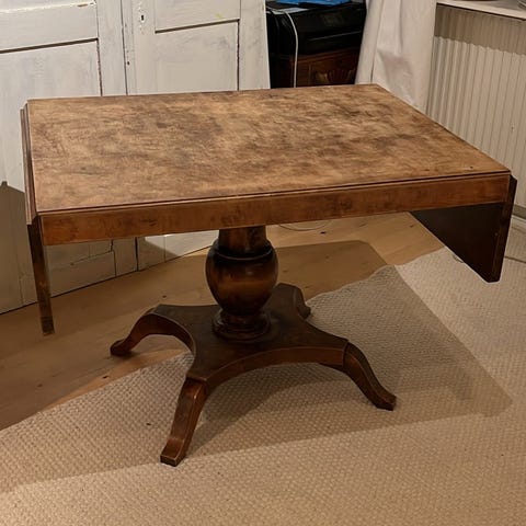 Rustikt runt pelarbord 90cm i diameter och 65 hög.