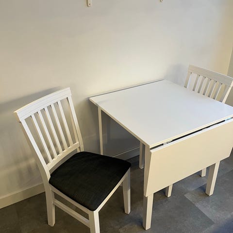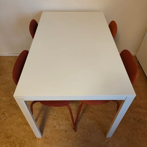 Matbordet heter Malin och stolarna heter Tilda och är från Mio och säljs som paket. Väl använda men inga stora fel.