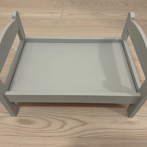 Dock säng från Micki Pippi med täcke, kudde och madrass.
