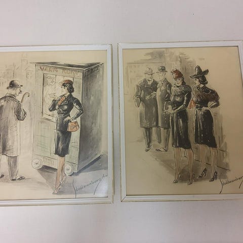 Den har några enstaka repor och sprickor, var god granska tavlan på bilderna före köp.