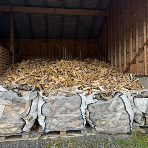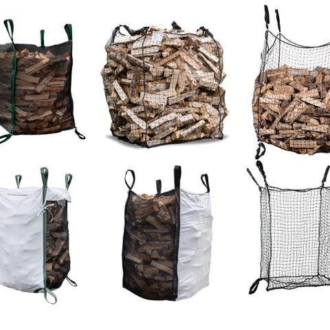 Vår egen vedsäck tillverkad i kraftigt material och med kapacitet upp till 1000 liter. 4-lyftöglor i topp. Ventilerade sidor som motverkar mögelbildning och som gör att veden torkar snabbare.