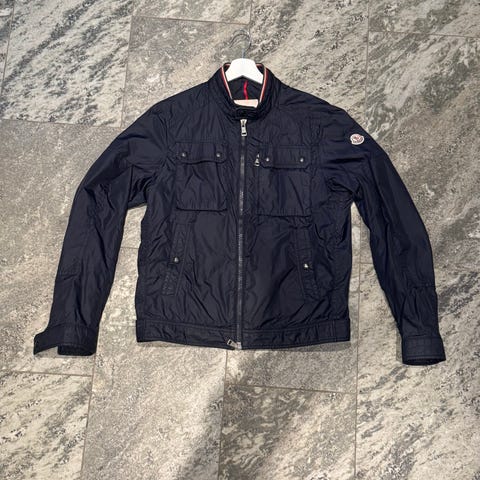 Moncler Övriga ytterkläder i blå färg, storlek S för dam. Tillverkad i nylonmaterial. Jackan har huva och dragkedja framtill samt två fickor med knäppning.