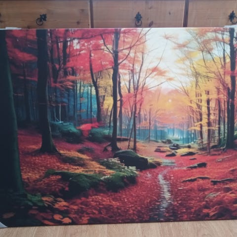 En handmålad tavla på canvas, färdig att hängas på väggen.