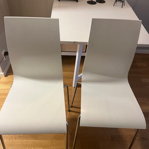 4 köksstolar, som är använda men i relativt bra skick. Svart sits och trä stomme.
