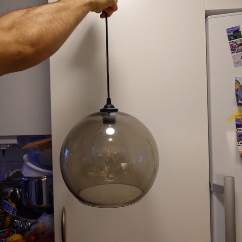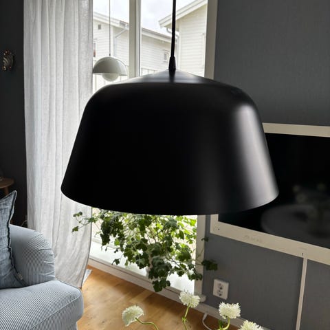 Vit kåpa i metall, ger fint ljus över tex matbordet!