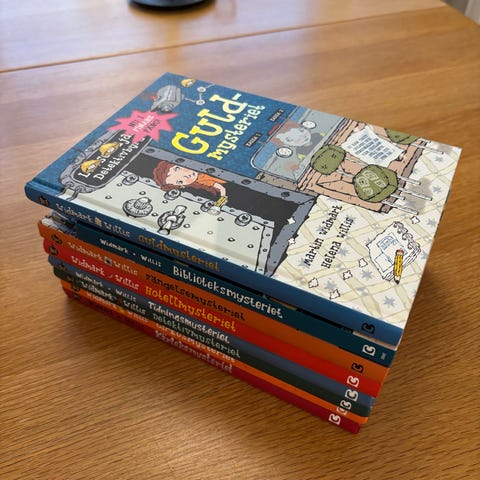 LasseMaja: Fotbollsmysteriet, Sommarlovsbok x2, Hotellmysteriet, Modemysteriet, Slottsmysteriet, Brandkårsmysteriet, Maskeradmysteriet, Biblioteksmysteriet, Diamantmysteriet, Skolmysteriet, Cafémysteriet och Guldmysteriet.