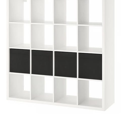 IKEA Kallax förvaringshylla i vitt utförande med 25 fack varav 5 med luckor. Hyllan har en kvadratisk design. Höjd 180, bredd 180,