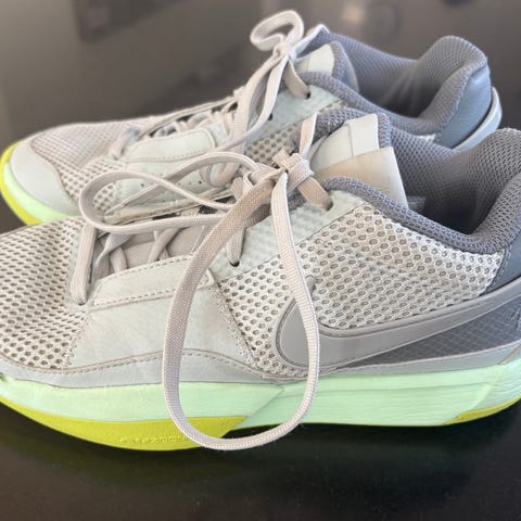 Nike Air Jordan 4 sneakers i storlek 39. Skorna är vita med grå detaljer och har en klassisk design i läder och syntetmaterial. Passar för vardagligt bruk och sportaktiviteter.