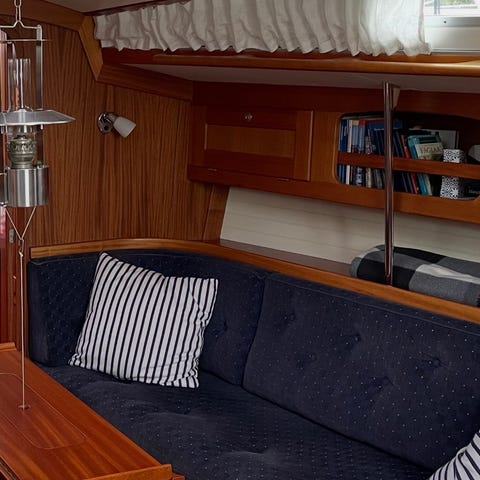 Gamla dynor till Bavaria 38 Cruiser från 2010. Dynorna är från samma år och använda till 2024. Sittdynorna i salongen är blekta. Några fläckar. Dynorna hämtas hos säljaren.