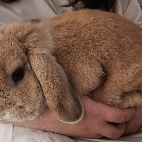 Han är social och gillar att skutta fritt hemma. Han har vistats inomhus under vinterhalvåret men älskat att vara ute på våren/sommaren.