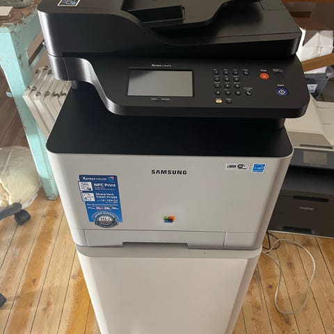 Fungerande och bra färglaser. Ethernet, USB, AirPrint, Wifi. Nya toners behövs.
