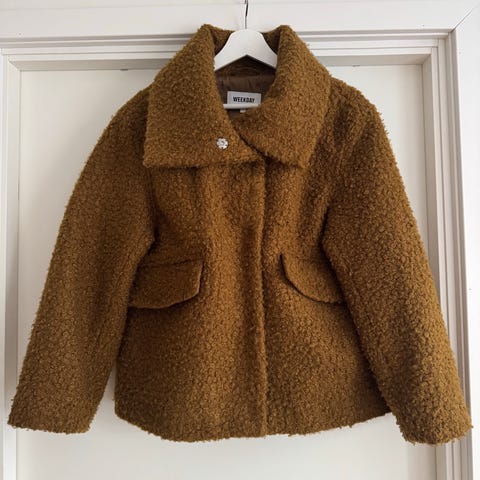 Weekday pufferjacka i storlek S för kvinnor. Jackan är lila (superfin färg) och tillverkad av polyester.