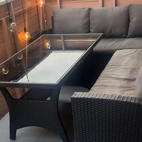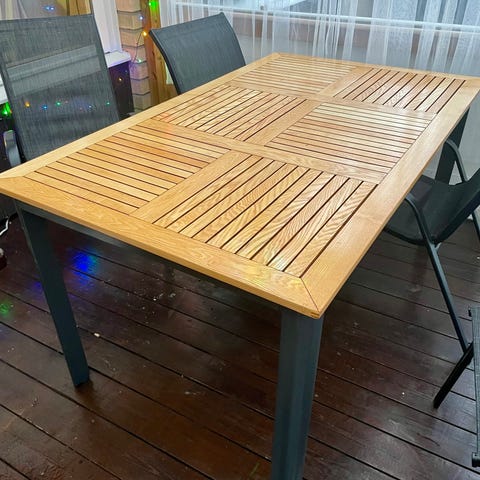 đȘStabilt & rymligt trĂ€dgĂ„rdsbord i metall med glas â 6 platser