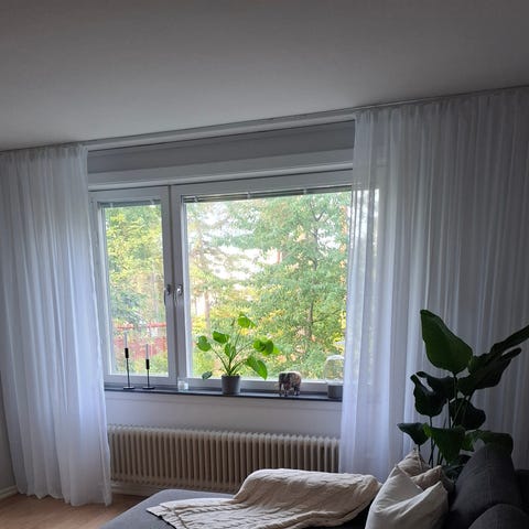 Längderna är i fint skick. Har haft dom upplagda med snabbfåll, inget som syns på framsidan av gardinerna. Se bilder.