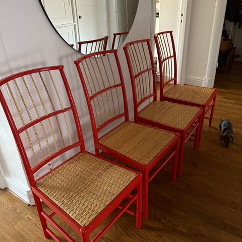 Stolarna nyligen omklädda med tyg från Svenskt Tenn.