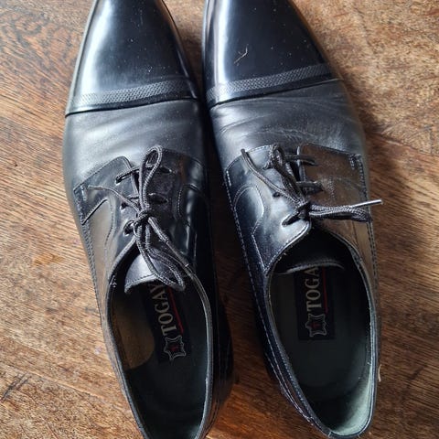 Svart stilren herrsko i skinn, stl 41. Använda 3 ggr
