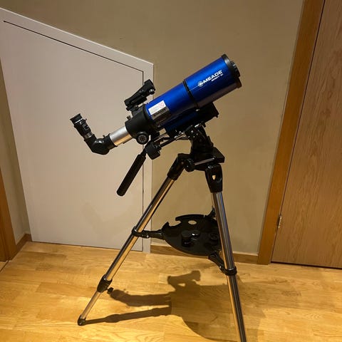 Bra och enkelt teleskop för att observera månen och planeter. Ingår Barlowlins med 2 ggr förstoring, 25 mm vidvinkellins, 10mm lins och jag har även köpt till en 2,5mm lins och ett månfilter. Finns även en red dot finder för att lättare kunna hitta det du ska observera.