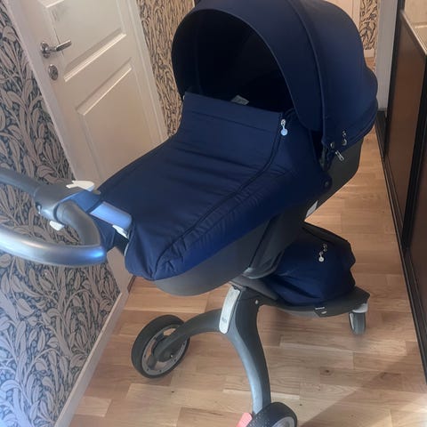 STOKKE Trailz duovagn. En rejäl, lyxig och hög barnvagn, toppen för långa personer.