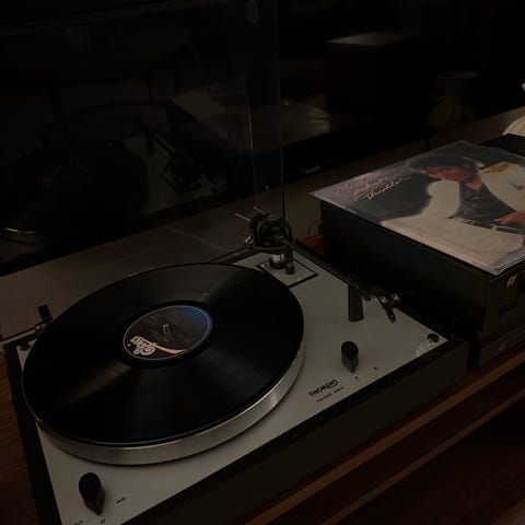 Retro stereo med möjlighet att spela vinyl, cd, radio, blåtand eller klassiskt kassettband.