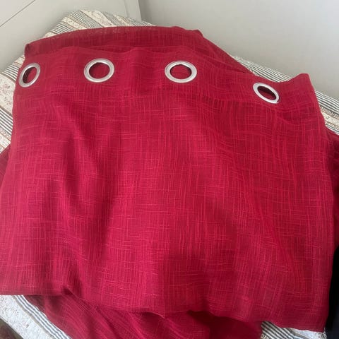 2 st "vinröda" gardinkappor med ringar för upphängning