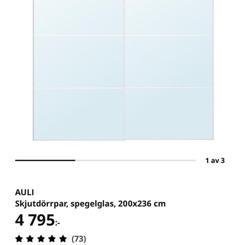 IKEA AULI skjutdörrar spegelglas 200x236cm