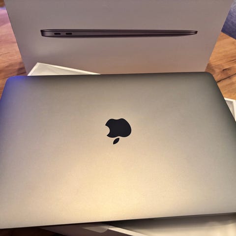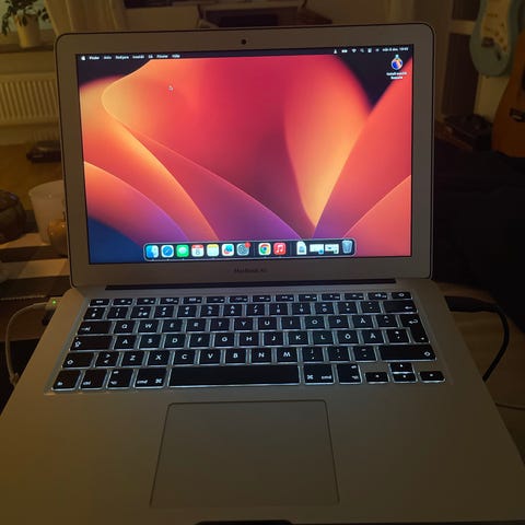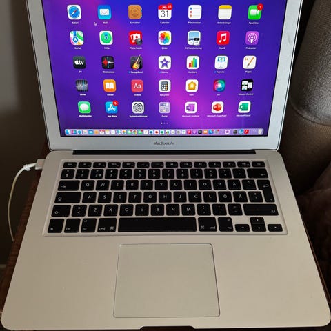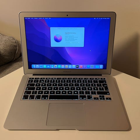 Apple MacBook Air laptop med macOS Monterey installerat. En bärbar dator med skärm, tangentbord och pekplatta, lämplig för allmän användning.