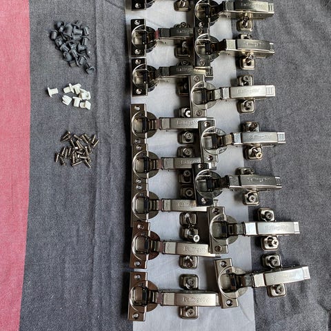 Minst 40st med tillhörande fästen och skruvar för installation. Nermonterad från mobalpa kök. Vissa behöver rengöras men är jättefint skick. Kan inte garantera att samtliga skruvar och fästen finns.