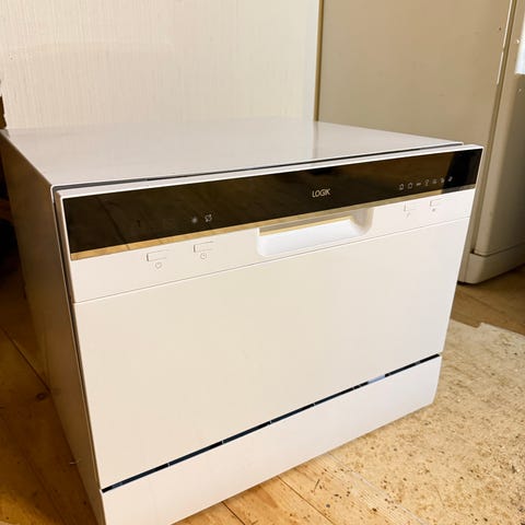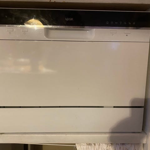 Logik Övriga diskmaskiner i vit färg. Kompakt modell med inbyggda funktioner för diskning. Utrustad med flera korgar och fack för bestick och disk. Anslutningssladd och vattenanslutning synliga. Passar för mindre kök eller där utrymme är begränsat.