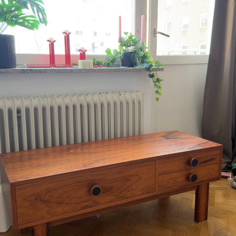 Mitt luckan på tv bänken är borta, går att beställa ny från Ikea. Soffbord 350:-