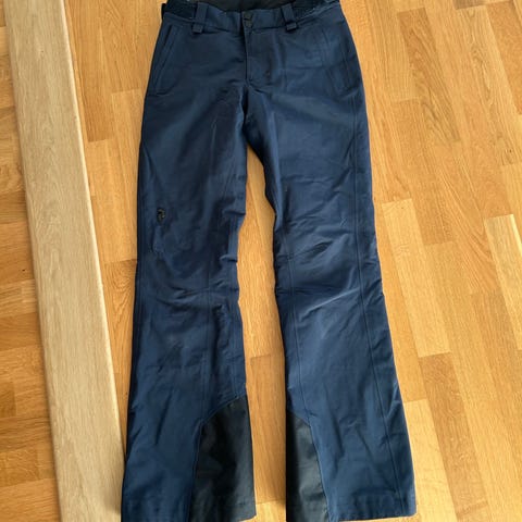 Superfina svarta, tighta lite utsvängda, skipants i softshell (polyester och spandex) med vadderade knän. Utrustade med snölås och reglerbara i midjan.