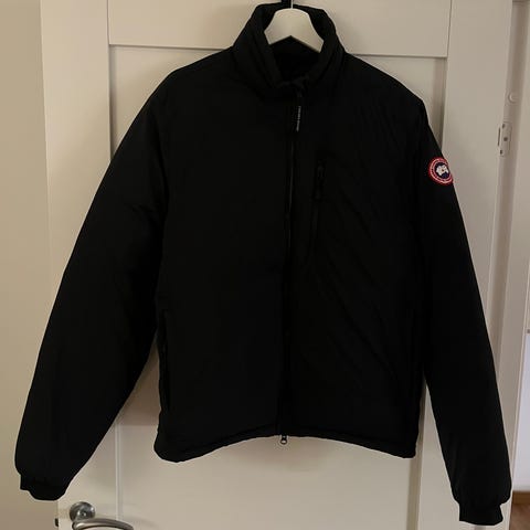 Säljer en mörkblå dunjacka från Canada Goose. Modellen heter Lodge Hoody och är en lättviktsjacka som fungerade från höst till vår.