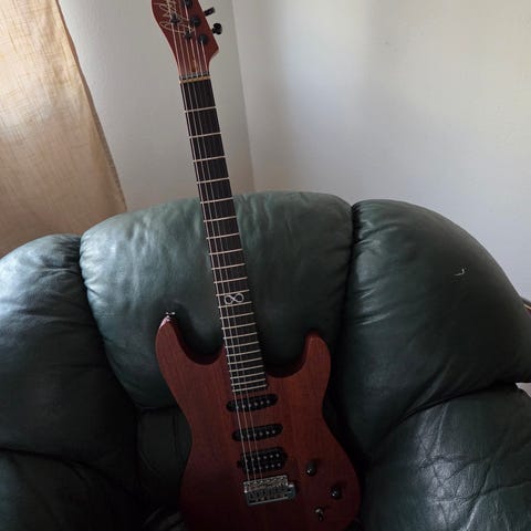Första utgåvan. Made in Korea. Låter suveränt med tre seymour Duncan mickar. Svajar ej original men funkar. Slumps pga platsbrist. Har även en Chapman tele som kan fås billigt om man köper denna (har skada på kroppen på telen alltså). Avhämtning Lidingö