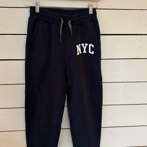 H&M jeans för flicka i storlek 146. Byxorna är blå och tillverkade i bomull. Modellen har hög midja med justerbart midjeband.