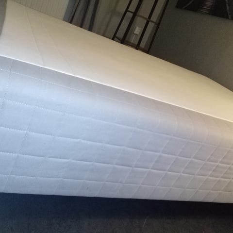 Medelfast IKEA kontinentalsäng HÖVÅG med underdel ESPEVÄR och bäddmadrass TUSTNA (ca 9 cm). Vita träben ca 20 cm. Sängens höjd avser utan bäddmadrass. Sängen finns på Södermalm (Katarina).