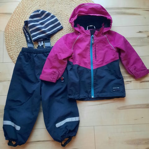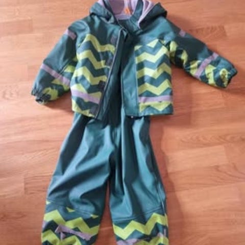 Vind och vattentätt överdragsset med jacka och matchande byxor i härlig grön färg! Jackan har avtagbar huva och reflexdetaljer. Byxorna har justerbara avtagbara hängslen, justerbar midja,fothällor, reflexer och förstärkta knän/rumpa. Inkluderar en skön grön fleecejacka med dragkedja (frFunk).