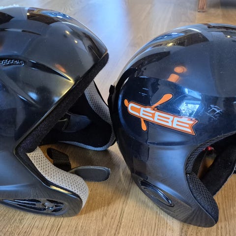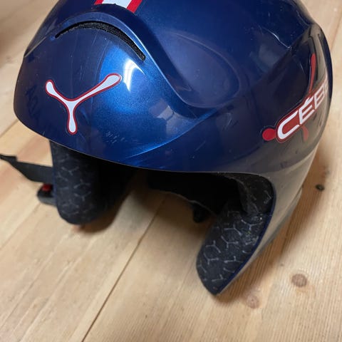 Cébé slalomhjälm, storlek small. Hjälmen har justerbart hakband. Bra skick . Har en del märken men absolut inget som påverkar funktion.