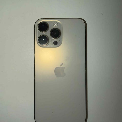 Apple iPhone 14 Pro mobiltelefon med 128 GB lagringskapacitet i svart färg. Telefonen har en skadad baksida med sprickor. Den har 100% batteri hälsa!