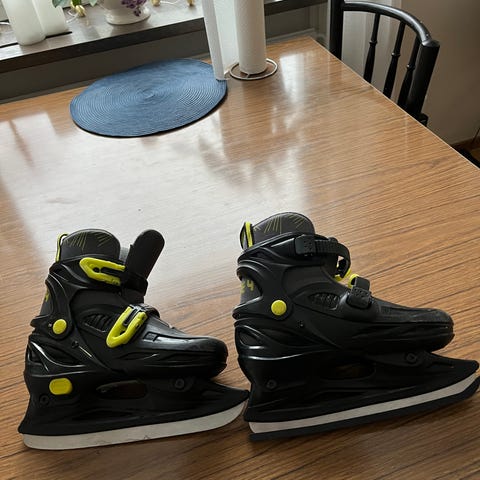 Rookie skridskor från Stadium i barnstorlek 33 med justerbara spännen för passform. De är hyfsat nyslipade och helt rostfria.