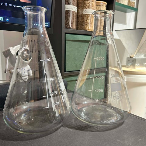 Kemiset med pipetter, skyddsglasögon, mätglas