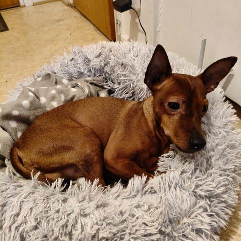 Maja väntar valpar inom 7 dagar. Dvärgtax