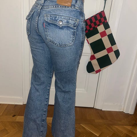 Levi's jeans i svart denim, storlek S med midjemått W25. Jeansens material är denim och de är designade för kvinnor.