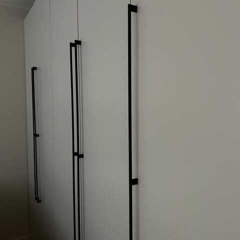 Ser ut som Ikeas Bagganäs handtag men är lite kortare 10 cm lång och hålmått är vid 9cm