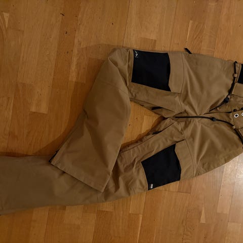 Dope Hoax skidjacka och skidbyxa grön färg. Jackan har huva och flera fickor med dragkedja. Byxorna är förstärkta vid knäna och har justerbara benslut.