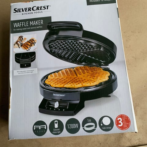 Wilfa våffeljärn i svart färg. Designad för att tillaga våfflor med hjärtformade sektioner. Passar för hemmabruk och enkel hantering.