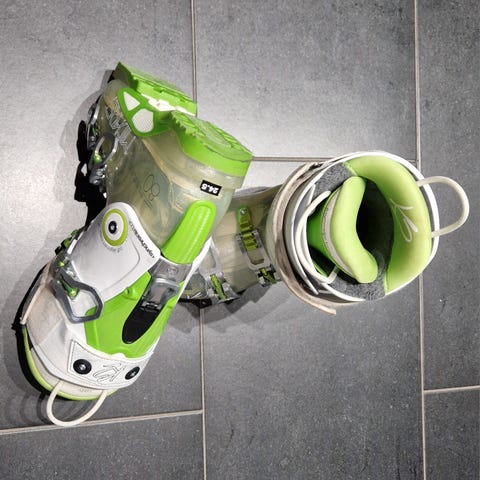K2 slalompjäxor, svarta i storlek 23/23.5 (274 mm). Pjäxorna har fyra spännen. Använda men i bra skick.