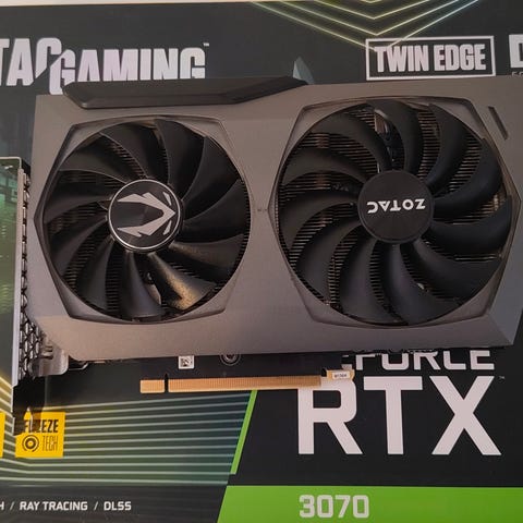 MSI GeForce RTX 3070 med original kartong i väldigt fint skick. Har använts mestadels till vanligt datorbruk.