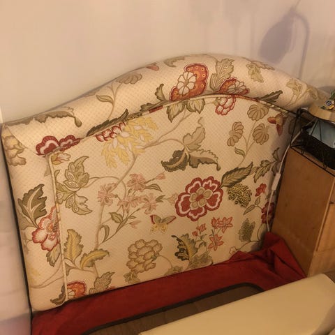 Sänggavel 210 cm med två tillhörande sängkappor i grått tyg